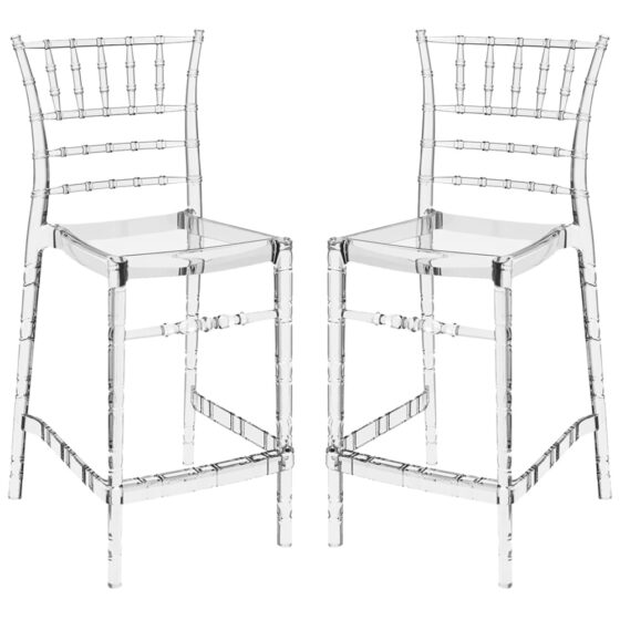 Calhoun Clear Transparent Polycarbonate Bar Stools In Pair