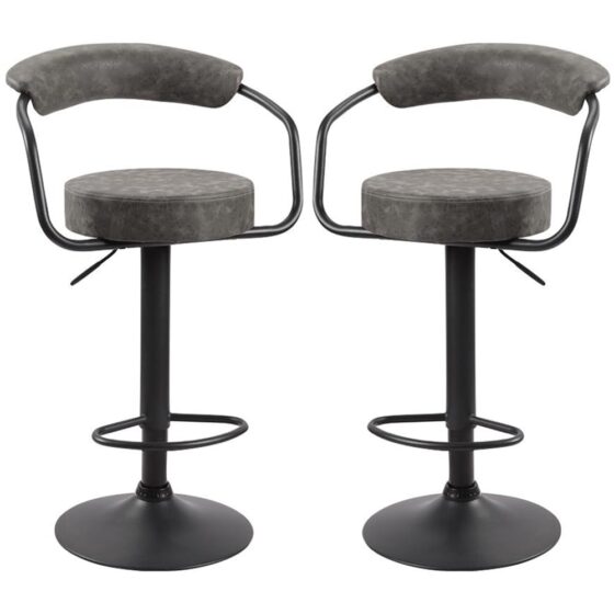 Hanna Grey Leather Bar Stools In Pair