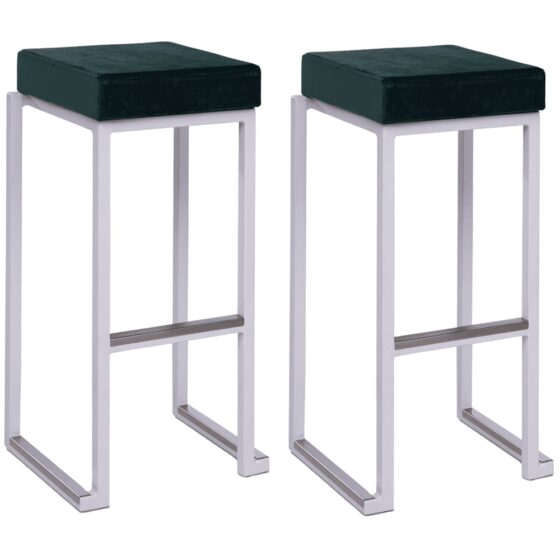 Add a touch of luxury and sophistication to your dining or bar area with the Furniture in Fashion Kelowna Green Velvet Bar Stools With White Steel Frame In Pair. Designed to impress, these elegant bar stools combine plush velvet upholstery with a sleek White steel frame, offering the perfect balance of comfort and contemporary charm. The rich Green tone adds a pop of colour and elegance, making them a stunning focal point in any modern interior. Crafted with meticulous attention to detail, the Kelowna bar stools provide both comfort and durability. The soft, cushioned seat and supportive backrest ensure relaxation, while the sturdy White steel frame offers lasting stability. Whether youre enjoying breakfast, entertaining guests, or sipping evening drinks, these bar stools deliver style, comfort, and sophistication in equal measure. Enhance your homes dining experience with the Furniture in Fashion Kelowna Green Velvet Bar Stools With White Steel Frame In Pair. Stylish, comfortable, and durable, this elegant duo brings a sophisticated touch to any space perfect for both everyday use and entertaining in style. FEATURES : Material : Powder-coated Steel, – Teflon Treated Velvet Fabric Finish : Green, White Stylish and versatile, the White Kelowna Smart Bar Stool is a stackable steel bar stool with a footrest that will make a statement in any event space with its minimalist, modern looks The seat pad is interchangeable, meaning its easy to change the look of the furniture; simply use the handy Velcro strips attached to both the frame and seat to swap the pads in and out With a UV-protected powder-coated metal frame and a cushion thats both fire-retardant and water-repellent, the Kelowna Smart Bar Stool will easily withstand constant use in busy commercial areas Stack up to 10 stools independently Frame constructed from powder-coated steel Aluminium footrest fixed with 2 screws Comes with an 8cm thick fire-retardant velvet cushion Interchangeable
