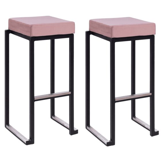 Kelowna Pink Velvet Bar Stools With Black Steel Frame In Pair