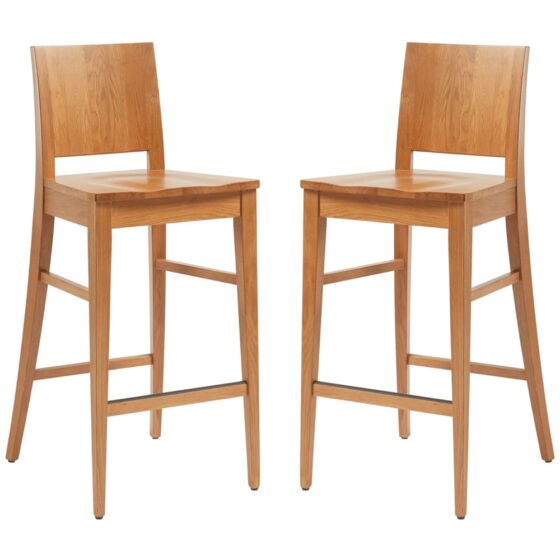 Add timeless charm and comfort to your kitchen island or home bar with the Furniture in Fashion Owensboro Natural Wooden Bar Stools in Pair. Crafted with a natural wood finish, these bar stools bring warmth and elegance to any modern or classic interior. Their sleek yet sturdy design ensures they seamlessly blend with various decor styles while providing a comfortable seating experience. The Owensboro Bar Stools are designed for both durability and everyday use. Made with premium-quality wood, they offer robust support and stability, making them ideal for casual dining, entertaining guests, or enjoying morning coffees. Sold as a pair, theyre perfect for creating a coordinated and stylish look for your bar or counter area. Enhance your bar or kitchen area with the Furniture in Fashion Owensboro Natural Wooden Bar Stools in Pair. Combining elegance, durability, and comfort, these barstools are the perfect addition to any stylish and functional living space. FEATURES : Material : Wooden Finish : Natural You can’t get more classic than the Owensboro Bar Stool Constructed from beautiful solid oak, the stool will withstand the most demanding commercial environments and will add traditional charm to restaurants, pubs, hotels, or golf clubs The solid frame and backrest offer optimal support and comfort and have been thoroughly tested for contract use Constructed from high-quality solid oak Coated with a clear protective lacquer Strong and durable Fitted with floor protectors Indoor use only Fully assembled Available at an affordable price Images shown are for illustration purpose only DIMENSIONS : Height : 108cm Width : 43cm Depth : 50cm Seat height : 76cm