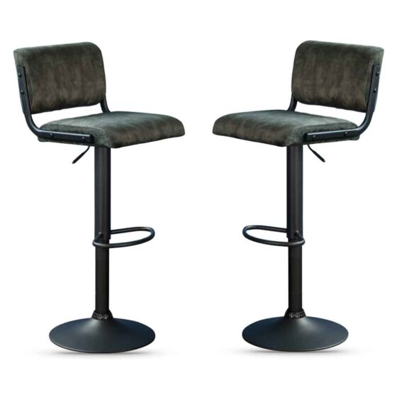 Pawling Fabric Gas Lift Bar Stools In Pair – Olive Green